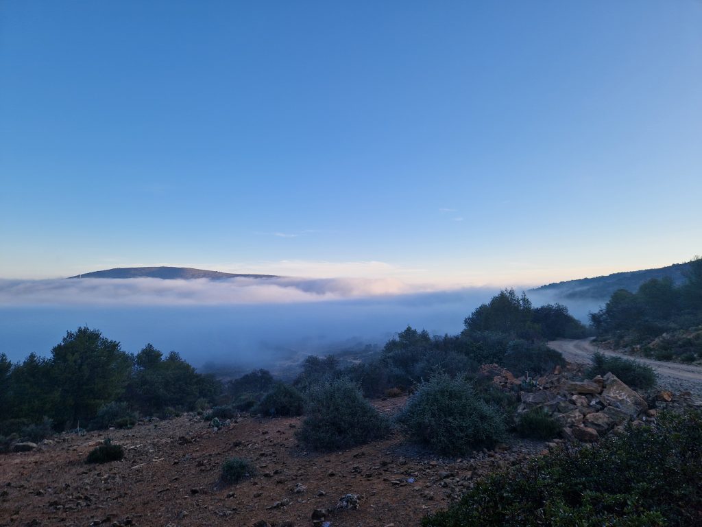 Weit oben und doch sind die Alpen zum Greifen nah. Die Berggipfel schauen aus den Wolken wie Felsen aus dem Meer. Ein unvergessliches Erlebnis.